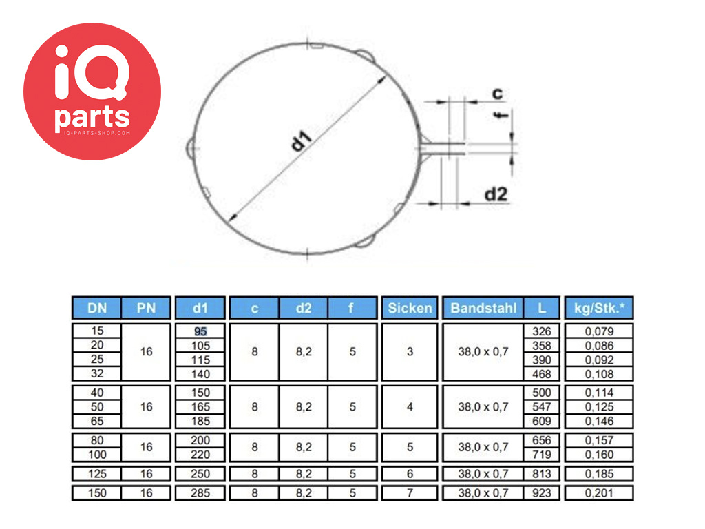 - Flexibel einsetzbar: Geeignet für Durchmesser von 95 mm bis 285 mm und Nennweiten DN 15 – DN 150.