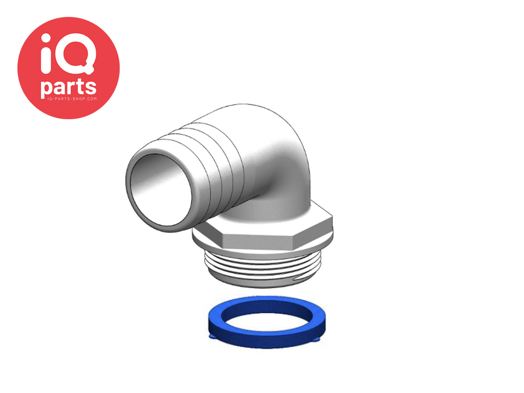 Die 90º Enden sind für Standardschlauchgrößen geeignet. Die Enden sind mit einem dickeren blauen Dichtring ausgestattet, sodass der Anschluss bei Bedarf in eine passendere Position gedreht werden kann.