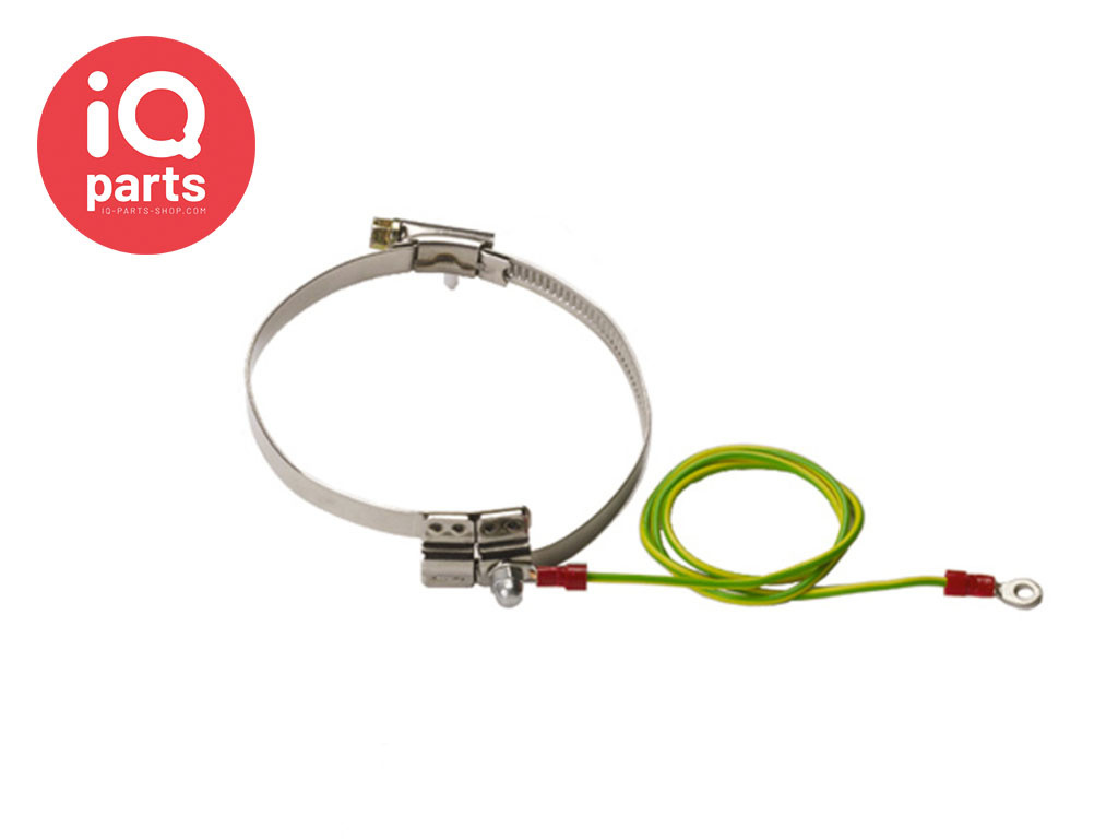 Bridge Clamp with integral grounding (via earth strip) for attaching externally corrugated spiral hoses