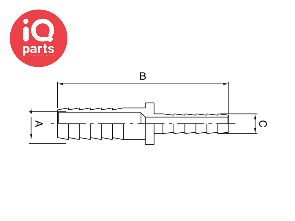 This is a straight hose barb made of W4 stainless steel 304 1.4301 with a connection with a different diameter on both sides. The ribs of the hose connections ensure a secure attachment of the hose. It is usually necessary to additionally secure the connection point with a hose clamp if extra pressure is put on the system.