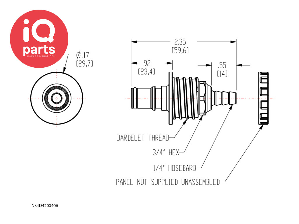 CPC - NS4D42004 / NS4D4200406 | NS4 Coupling insert | Panel mount | Hose barb 6,4 mm (1/4")