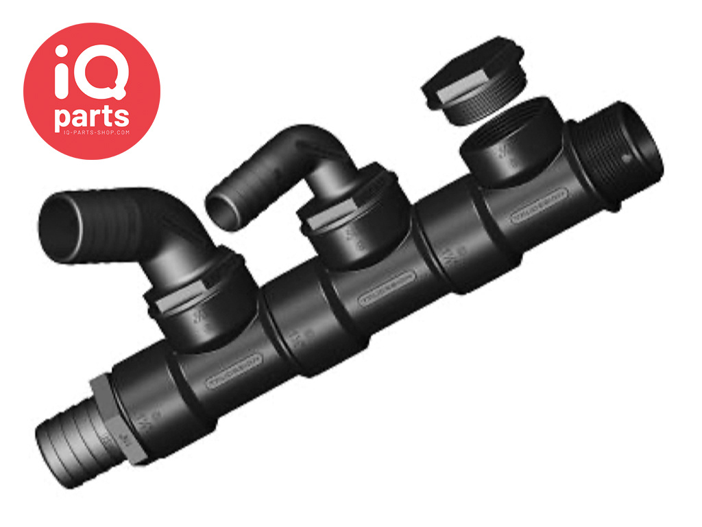 The 1½" Threaded T-Piece / Universal Manifold features 2x Female threads and 1x Male thread enabling them to be joined together to create manifolds - useful for multiple hose connections to a single Ball Valve & Thru-hull fitting. The centre female thread is shorter and designed for use with Aquavalve Tails (Straight, 90°, and 120°) giving the option of tail sizes from 19mm up to 38mm. The Plug, or Threaded Connector can also be used in the centre connection.