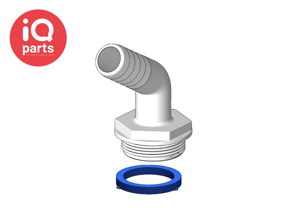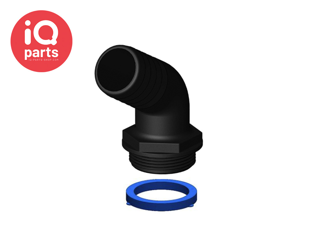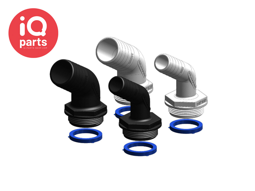 120º uiteinden zijn geschikt voor standaard slangmaten. De uiteinden zijn voorzien van een dikkere blauwe afdichtring, zodat de fitting indien nodig naar een geschiktere positie kan worden gedraaid.