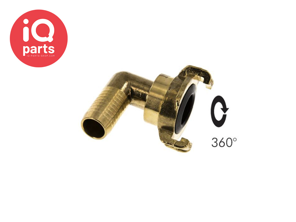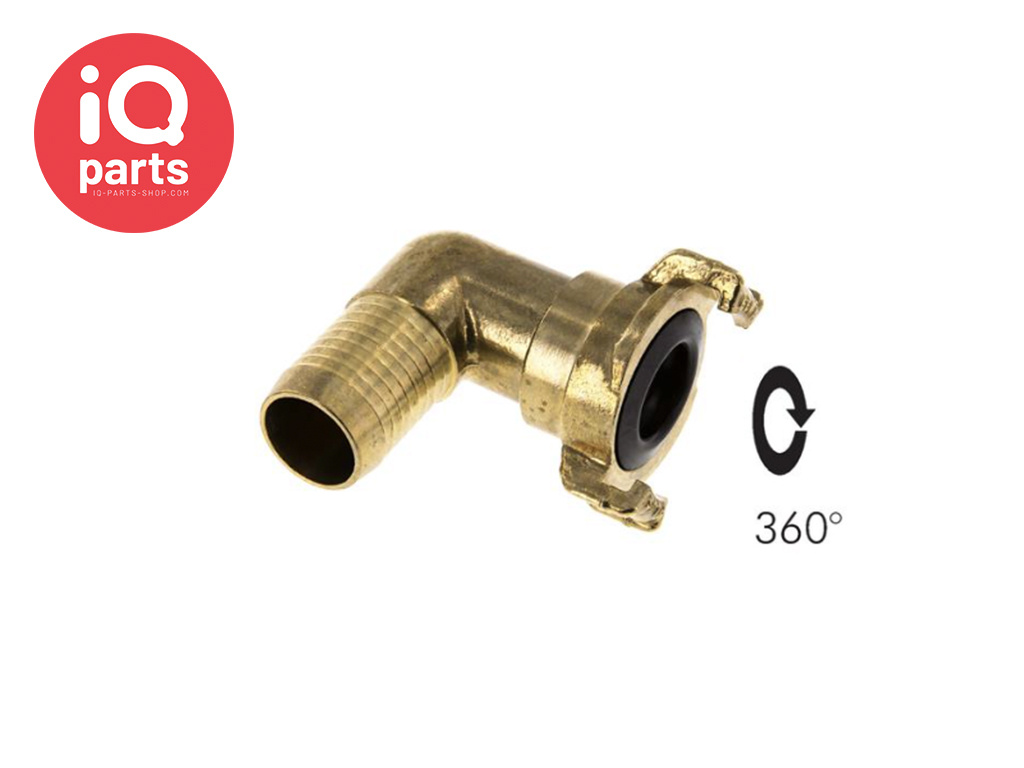 IQ-Parts Tuinslang-snelkoppeling | 40 mm | 90º aansluiting | Slangtule | Draaibaar | messing