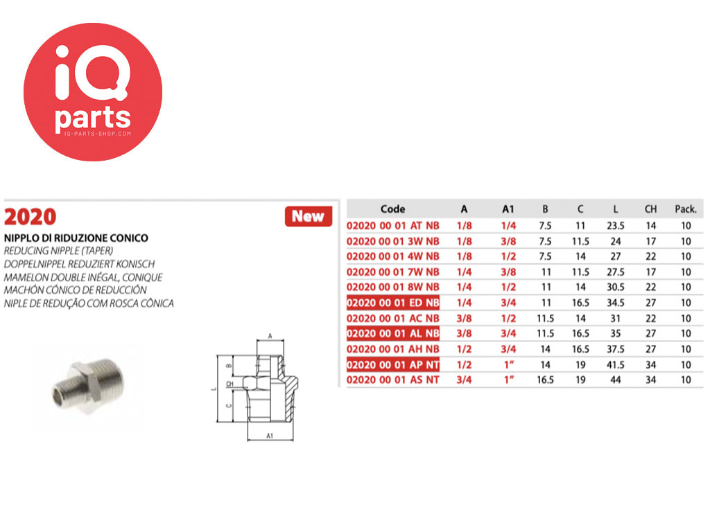 Verloopnippel Messing vernikkeld BSPT